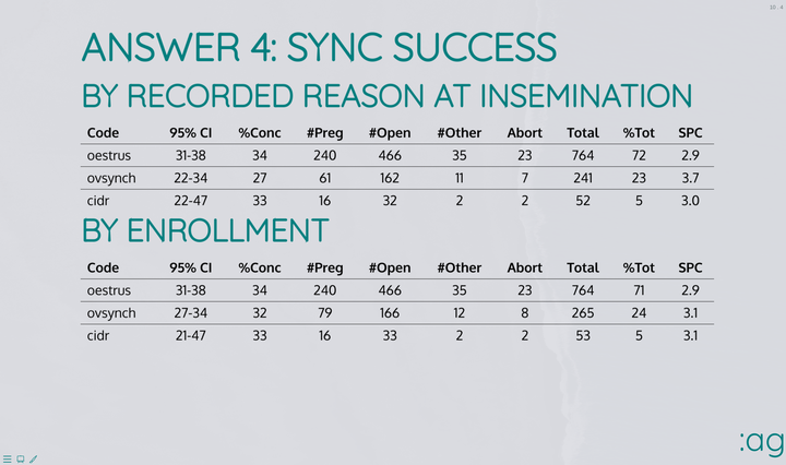 Attended by more than 50 practising veterinarians from the UK, this interactive workshop was designed to furnish participants with a few rarely-understood but fundamental tools that are invaluable when solving farm problems. Rather than teaching targets and rules of thumb, which by definition only help in specific cases, this session aimed to provide some of the fundamentals which allow any problem to be tackled. After an interactive illustration of the effects of lag, momentum, variation & bias, and how to choose the most appropriate metric in every case, there was a discussion of some common sources of bias in farm data which often mislead even very experienced analysts. As part of a breakout session participants were given concise problems to discuss with the group, which were based on common real-world scenarios that are more complex than they may initially appear. Some of these would challenge even the most experienced Dairy Veterinarians.